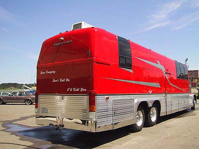 A Kingsley Coach to be exact. Ever seen one on the road? You can tell it by all the heads turning to watch it go by. Built along the lines of a Prevost, this was Kingsley's first entry into the truck conversion motorhome market. This LeeAnn Rimes coach (see the link below) made Kingsley famous for their custom truck conversions for touring rock stars.